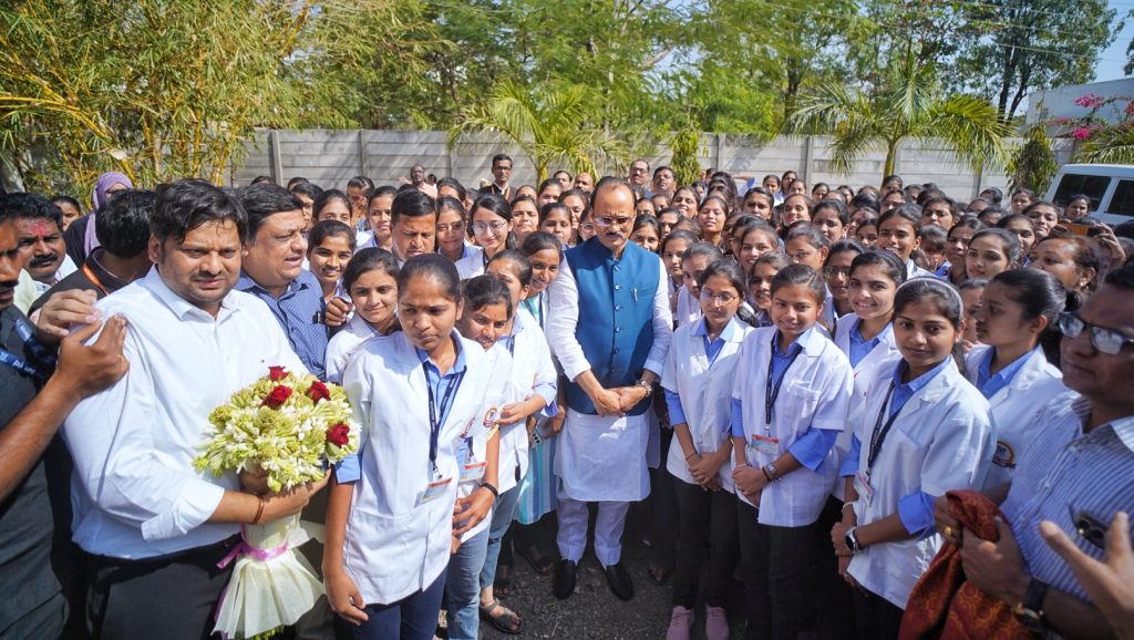 राज्याचे उपमुख्यमंत्री अजित पवार जालना दौऱ्यावर असतांना त्यांनी बदनापूर येथील आमदार नारायण कुचे यांच्या कार्यालयाला भेट दिली तेव्हा निर्मल क्रीडा व समाज प्रबोधन ट्रस्ट संचलित इन्स्टिट्यूट ऑफ फार्मसीच्या विद्यार्थिनींनी त्यांची भेट घेतली असता तुम्ही लाडक्या बहिणी आहेत निश्चितपणे पुढच्या वेळी तुमच्या कॅम्पस ला भेट देईन असे म्हणत विद्यार्थिनी सोबत अभ्यासाविषयी आस्थेवाईकपणे विचारणा करून तुम्ही चांगला अभ्यास करा आणि देशाचे भविष्य घडवा अशी सूचना केली.यावेळी संस्थेचे अध्यक्ष डॉ.देवेश पाथ्रीकर यांनी अजित पवार यांचे स्वागत केले.